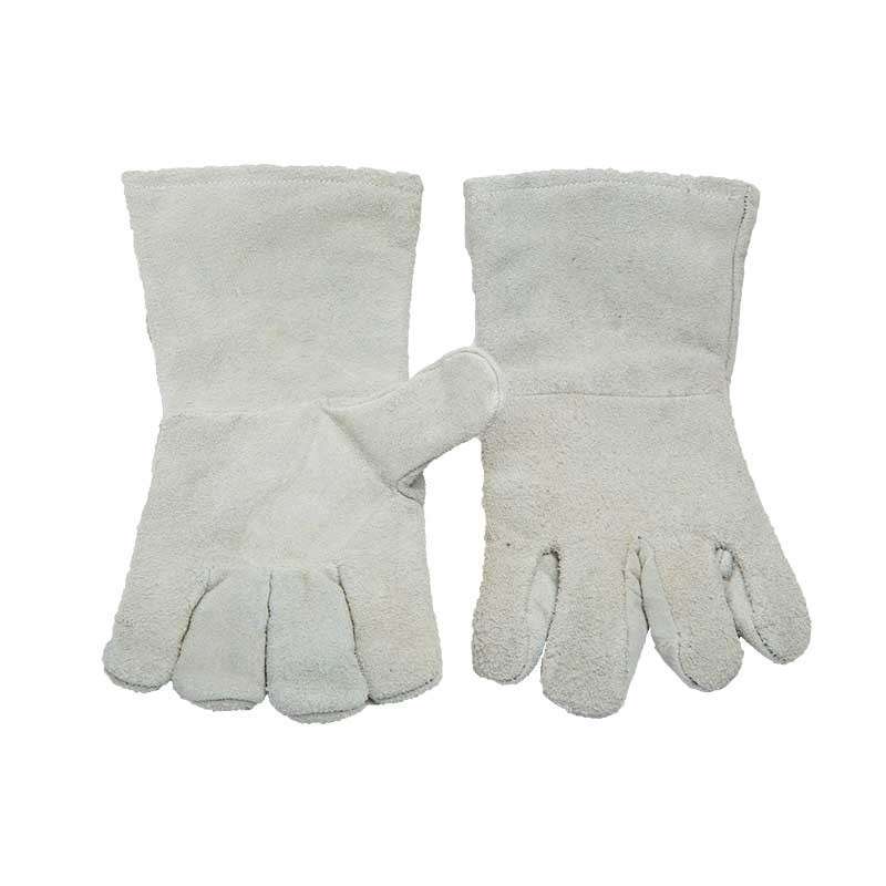 Par de guantes de soldador color gris fabricados de carnaza. Ofrece una protección en superficies calientes moderadas, ideal para trabajos de soldadura, abrasión, corte y penetración.