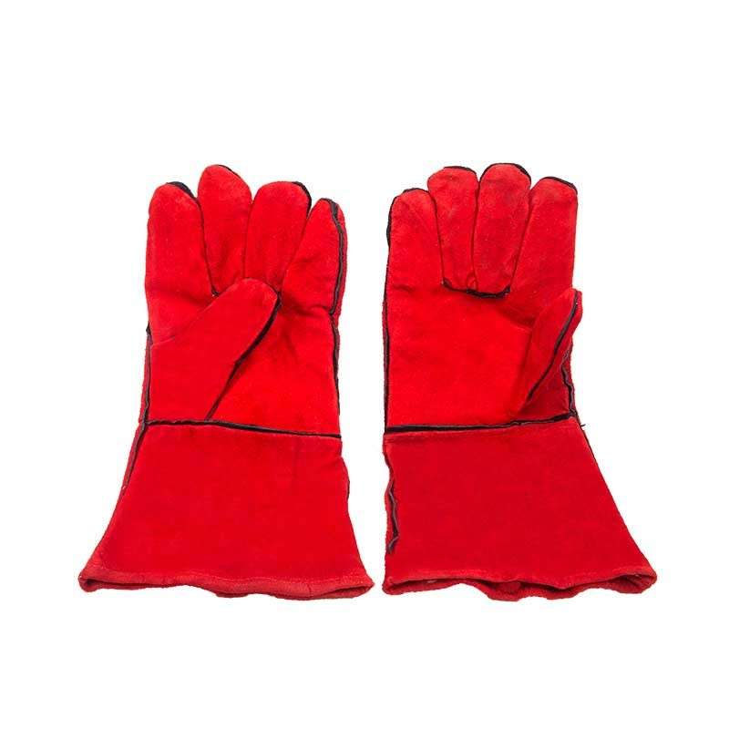 Par de guantes de soldador color rojo. Hechos con carnaza, y con forro de algodón. Ofrece protección contra superficies calientes moderadas, ideal para trabajos de soldadura, abrasión, corte y penetración.