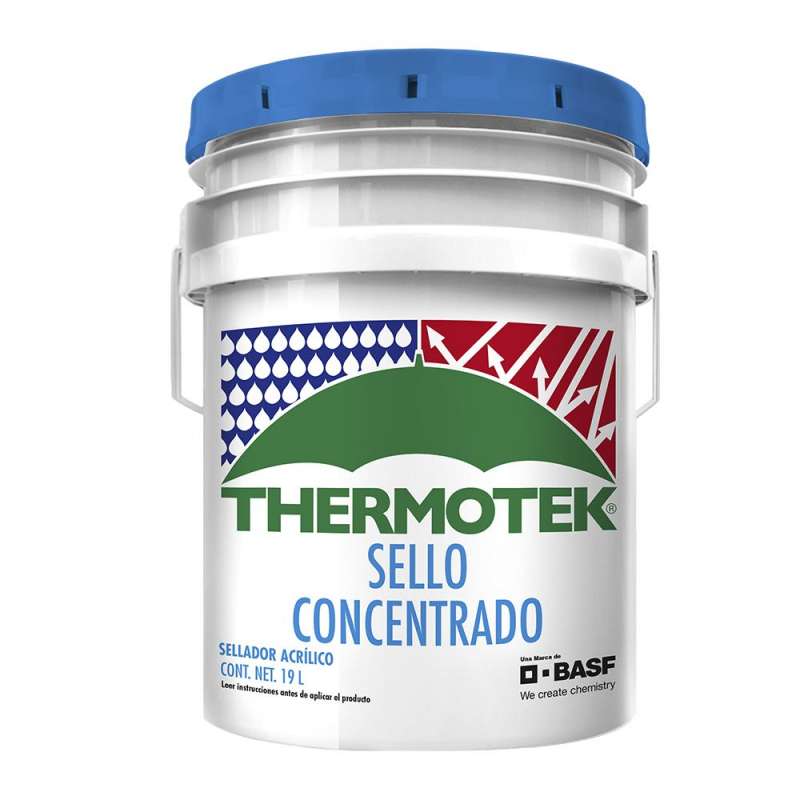 El sello acr铆lico concentrado Thermotek en cubeta de 19 L, es el complemento ideal para proteger el techo de todo tipo de construcci贸n como: edificios, comercios y casas habitaci贸n junto al impermeabilizante.