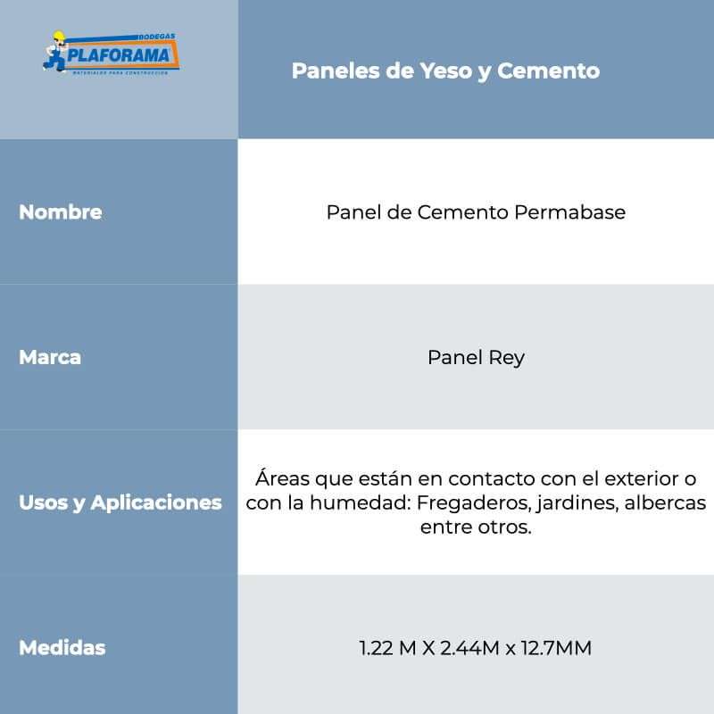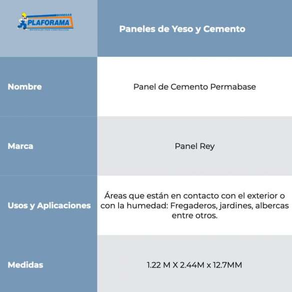 El panel de cemento PermaBase 1/2"" con medidas 1.22m x 2.44m x 12.7mm, fue diseñado especificamente para soportar proyectos en exteriores o para áreas en contacto con humedad. Por ejemplo: muros fachada, jardines, albercas, etc.