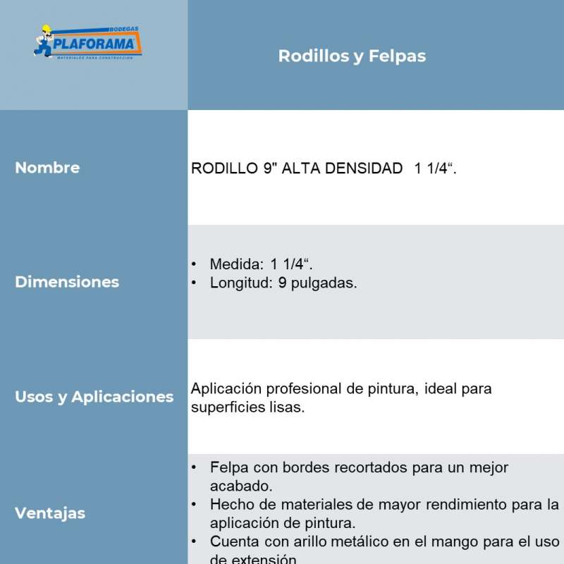 El rodillo para pintar BYP RPR49 de 9" x 1 1/4" pulgadas es ideal para uso profesional ya que facilita la aplicación de pintura al cubrir más área en menos tiempo.