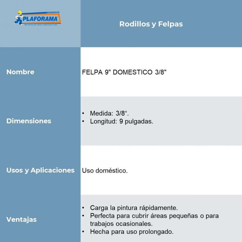 1 Felpa de 9" de largo x 3/8" de densidad.