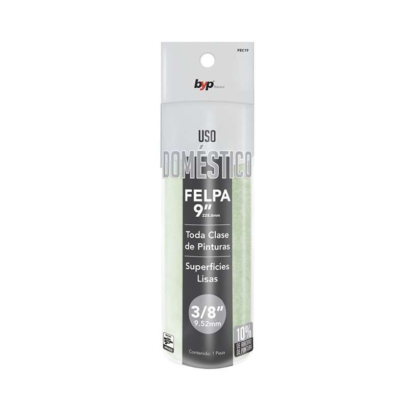 Felpa Básico de Uso Doméstico 9" x 3/8" REC19 marca BYP, es ideal para trabajos de pintura en casa o trabajos ocasionales.