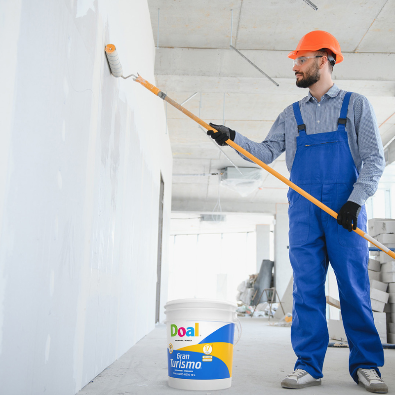 La pintura vinílica Doal Gran Turismo 17 años semigloss blanco satinado lavable para interior y exterior ideal para muros en interior y exterior. Tiene una alta resistencia al medio ambiente extremo.