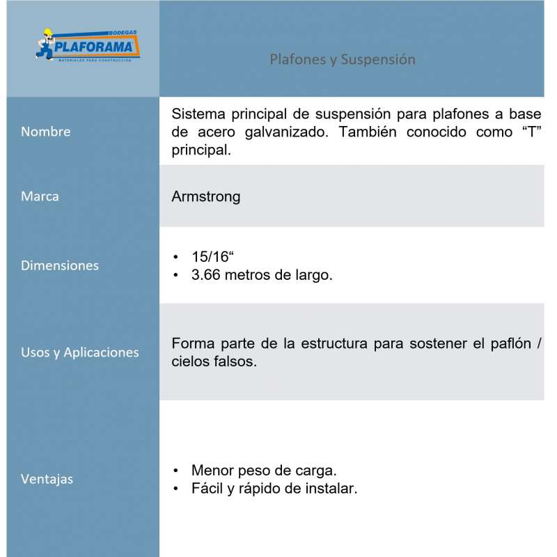 Forma parte de la estructura para sostener plaflones y cielos falsos.